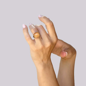 The Microcosmoses Reflet Rings ™ are hand-made, worked with flame in Corfu. The colours fantasticly shimmering, are lively and change depending on how the light falls onto it.