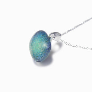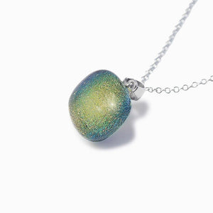 The  Microcosmoses  Reflet  Necklaces ™   are  hand-made,  worked with flame in Corfu. The colours fantasticly shimmering, are lively and change depending on how the light falls onto it.