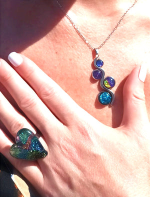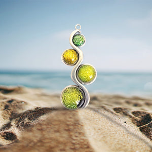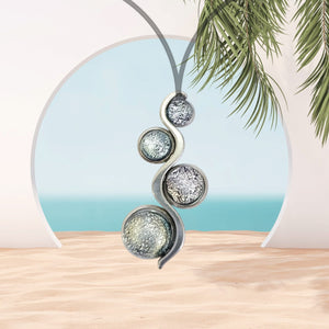 This necklace catches the full spectrum of sea colors – shifting from emerald to sapphire with every movement.